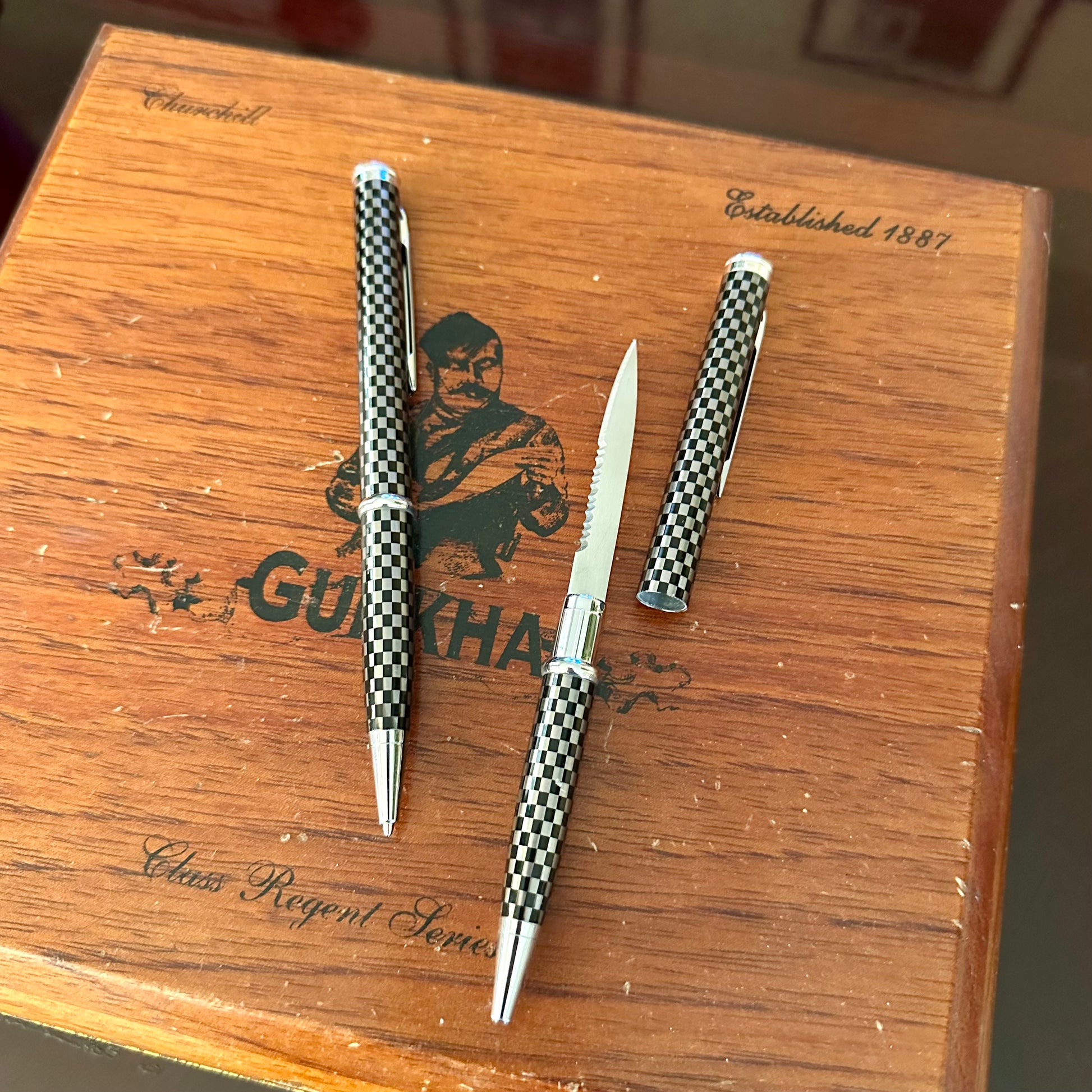 At first glance, it’s a sleek silver pen. But twist to reveal a hidden 3” blade that makes the Silver Statement the ultimate lowkey letter opener or discreet self-defense tool. Lightweight, refillable, and wrapped in a carbon fiber-style pattern, this pen is ready to handle more than just to-do lists.