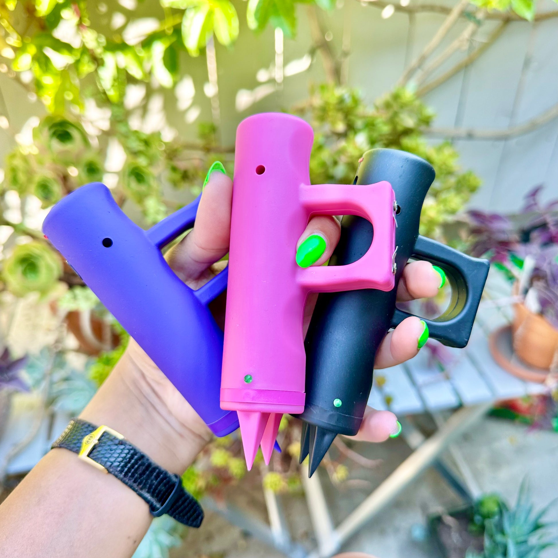 The Jogger Stun Gun delivers a powerful 4.8 million volts, making it the perfect self-defense tool for joggers and walkers. Its ergonomic design fits easily in hand while in motion, so you won't need to fumble for it when danger is near. The pointed spikes on the end provide a nasty yet persuasive hammer-fist strike.